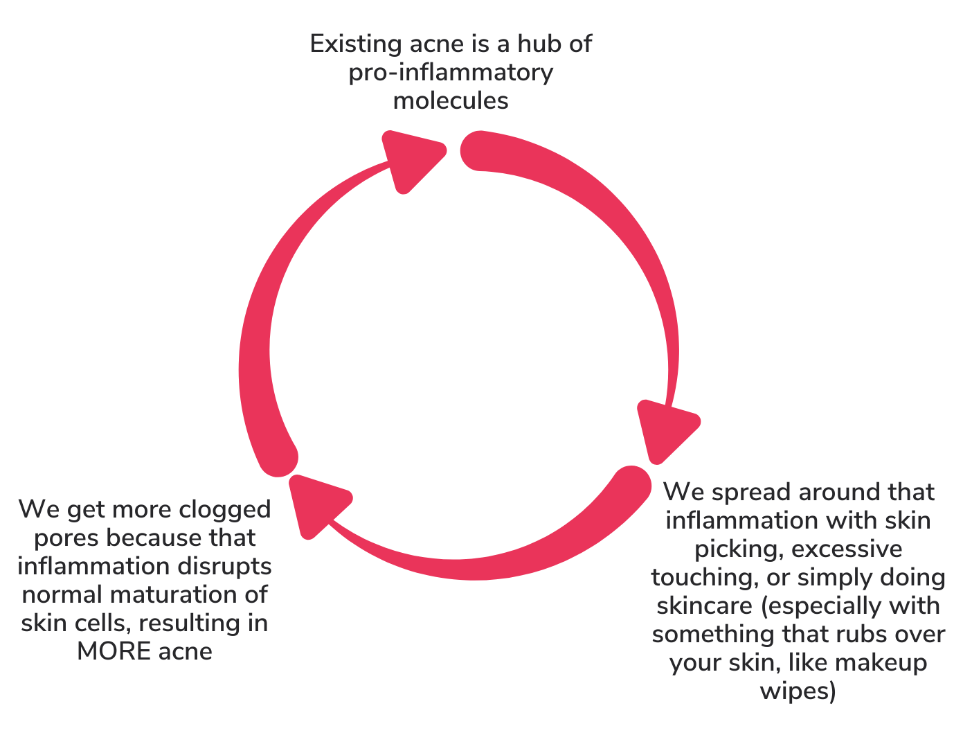 This is true for most people. Something "internal" STARTS the acne, then acne gets perpetuated by a chronically inflamed skin barrier - worsened by our daily skincare practices!