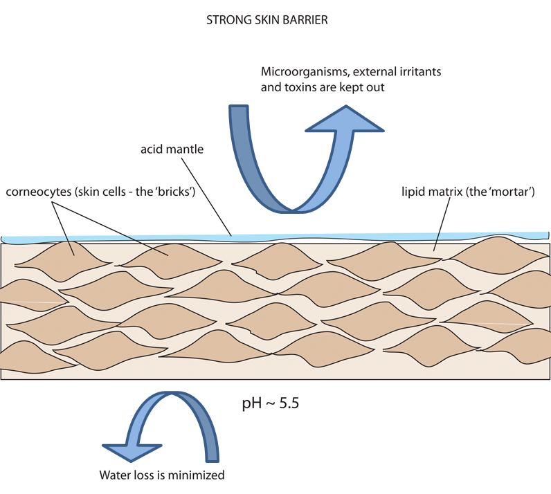 The skin barrier is the uppermost layer of your skin, the one you can touch. Despite being largely composed of "dead" skin cells (properly called corneocytes), they are still highly functional and crucial for the health and appearance of your skin.